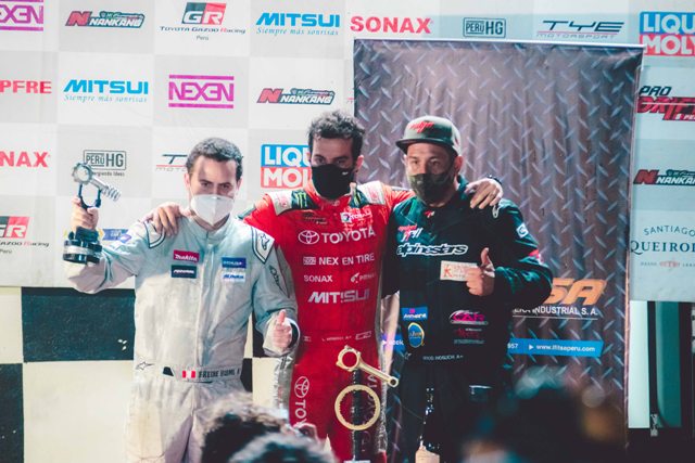 Lima, 07 de Diciembre del 2021.-El sábado 04 de diciembre en el Kartódromo la Chutana, se vivió una verdadera fiesta fierrera con un inmejorable show de llantas humeantes, el cual dejó como ganadores en la categoría PRO 2 al popular “Carro de la Barbie”, el piloto y showman JK Navarro; mientras en la categoría PRO 1 suprema del Drifting Nacional, el ganador fue el piloto de Team Toyota Gazoo Racing Perú, Lucho Mendoza Jr.
