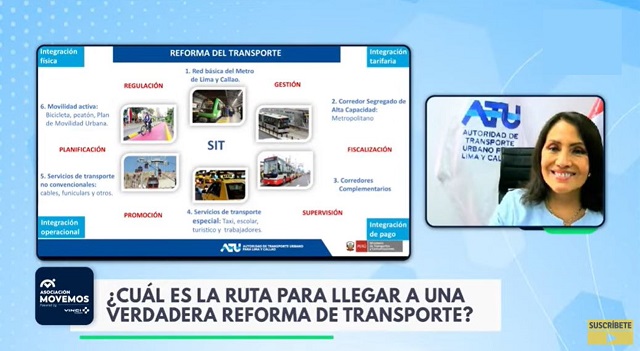 Ante este panorama, considerando que “la ATU reconoce el transporte urbano como un servicio esencial y por tanto requiere un subsidio como una cuestión técnica a cambio del cumplimiento de determinados requisitos, hemos planteado cuente con una previsión de 1,000 millones de soles para el funcionamiento del transporte en el próximo año. Además, hemos propuesto una serie de iniciativas de manera inmediata como el Modelo de Transporte que ya se instaló en la ciudad y que se va extender a distintas ciudades, creamos el Reglamento de transporte especial, el Reglamento del servicio público de taxis, el estándar del Bus Patrón Eléctrico, entre otros”, sostuvo María Jara, presidenta ejecutiva de la ATU.