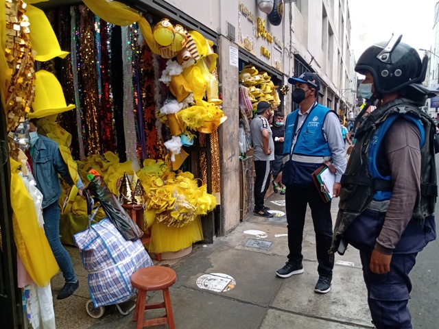 Lima, 30 de Diciembre del 2021.- La Municipalidad de Lima realizó un operativo de inspección en galerías y locales del conglomerado Mercado Central donde se comercializan cotillón, globos y guirnaldas para celebrar las fiestas de Año.