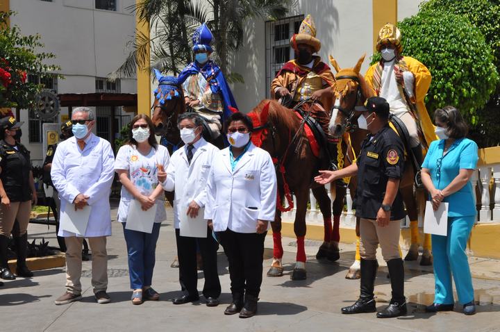 Reyes Magos de la Policía Nacional del Perú, llegaron este miércoles al INSN (Instituto Nacional del Niño) Breña, trayendo alegría y mensaje de paz, amor y esperanza a los pequeños hospitalizados, al personal médico asistencial y administrativo del INSN.