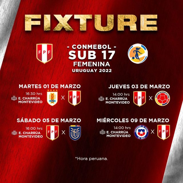En este torneo internacional, Perú forma parte del grupo A junto a Uruguay, Colombia, Chile y Ecuador. Por otro lado, es importante mencionar que, la ‘blanquirroja’ hará su debut el próximo martes 01 de marzo, a las 16:30 hrs. (horario peruano) frente al país anfitrión. Los partidos serán transmitidos por DIRECTV.