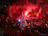 Lima, 24 de Marzo del 2022.- Emoción, fe y las mejores vibras. La mejor hinchada del mundo se apostó en los exteriores del hotel de concentración de la Selección Perú de Fútbol en Montevideo, a pocas horas del partido trascendental frente a Uruguay, para protagonizar el habitual banderazo.
