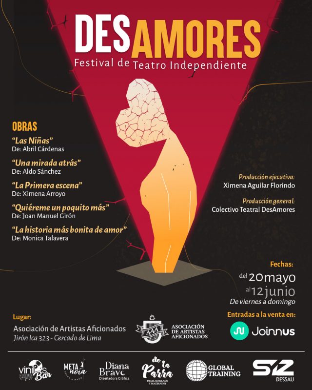 Del 20 de mayo al 12 de junio del 2022 se llevará a cabo el Primer Festival de Teatro Independiente DesAmores, que tendrá como escenario la Asociación de Artistas Aficionados, del centro de Lima, y que propone nuevos enfoques dramatúrgicos representados en montajes teatrales con lenguajes escénicos contemporáneos.