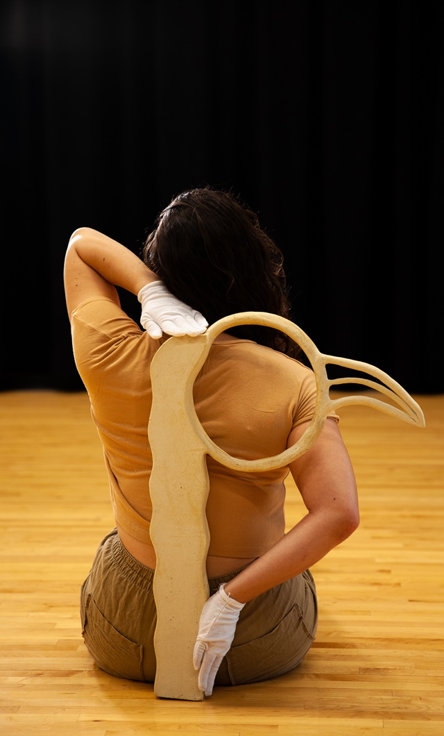 La investigación también la llevó a conocer al artista Marco Herrera, a través de una residencia artística muy especial que él organiza con Correlación Contemporánea, donde conoció a arqueólogos, artistas educadores y gestores que usan la historia, lo social, el arte y la ciencia para formar comunidad en el Perú. “A partir de esta experiencia nos planteamos imaginarnos cómo estos objetos-seres del pasado se reencuentran en el futuro, haciendo una especie de ensayo de repatriación pero en un plano futurista, místico y no lineal”.