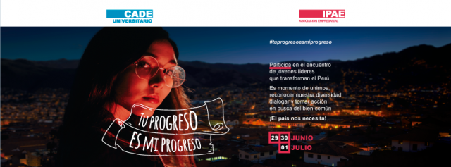 Lima, mayo de 2022.- Continuando con su compromiso con la creación de espacios de diálogo que busquen el desarrollo del Perú, IPAE Asociación Empresarial organizará entre el miércoles 29 de junio y el viernes 1 de julio la vigésimo séptima edición de CADE Universitario, el encuentro de jóvenes líderes más importante y diverso del país, con el lema “Tu progreso es mi progreso”.