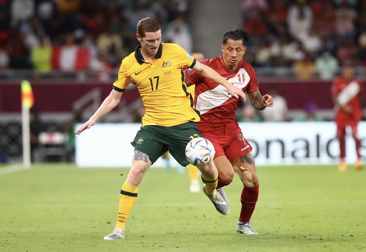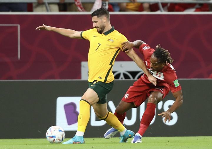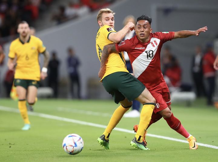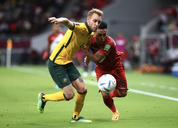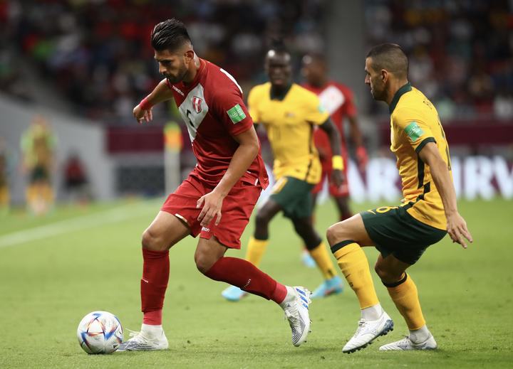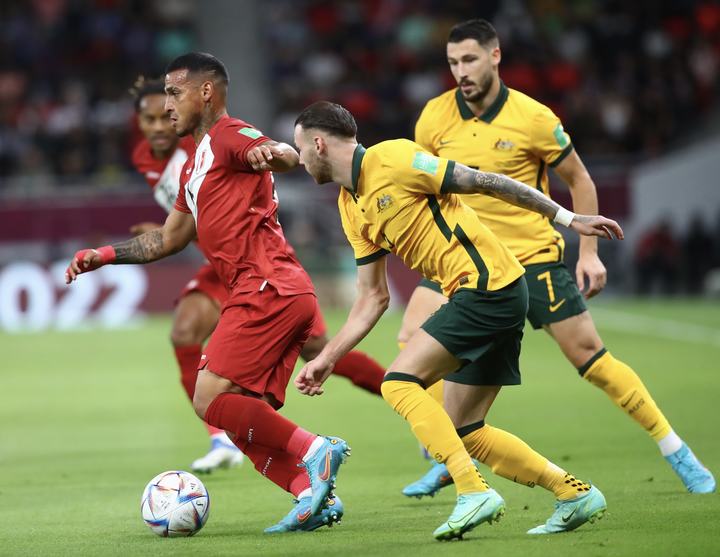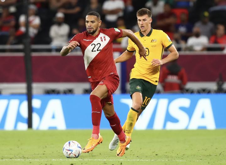 Qatar, 13 de Junio del 2022.- Perú vs. Australia jugaron partido único por el Repechaje rumbo a Qatar 2022. Se enfrentaron en el Ahmad Bin Ali Stadium, en Doha (Qatar). Perú estuvo cerca, pero quedó fuera al de la Clasificación al Mundial, al caer 4-5 por Penales.