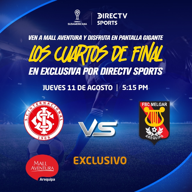 Lima, 10 de Agosto de 2022.- Melgar enfrentará mañana, jueves 11 a Internacional de Brasil por los cuartos de final de la Copa Conmebol Sudamericana 2022, y DIRECTV tendrá la transmisión en vivo y en exclusiva del encuentro a través de su canal deportivo DIRECTV Sports y su plataforma de streaming DIRECTV GO.