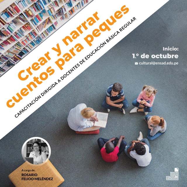 Continuando con las Capacitaciones artísticas para docentes a nivel nacional, la Escuela Nacional Superior de Arte Dramático ENSAD mantiene las inscripciones abiertas para la actividad CREAR Y NARRAR CUENTOS PARA PEQUES a cargo de la docente Rosario Feijoo Meléndez. De manera virtual, comenzarán las clases el día sábado 1°. de octubre a las 10:00 am.