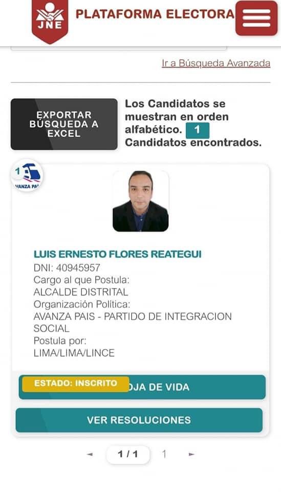 El candidato a la alcaldía de Lince Luis Flores por Avanza País, denunció que el logo de la agrupación política por la que postula no aparece en la cédula de sufragio de las elecciones Municipales y Regionales 2022.