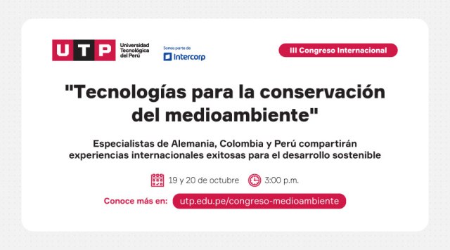 En este congreso, organizado por la Universidad Tecnológica del Perú (UTP), especialistas de Alemania, Colombia y Perú compartirán experiencias internacionales exitosas para un desarrollo sostenible.