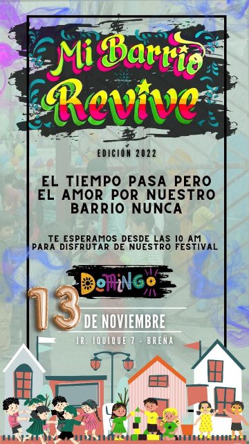 Es por ello que, en el año 2016, decidieron crear el festival “Mi Barrio Revive” con la finalidad de integrar a los vecinos y no perder el vínculo con el barrio, pero sobretodo para revivir los juegos tradicionales y que las nuevas generaciones conozcan una forma de diversión, más sana y lúdica.