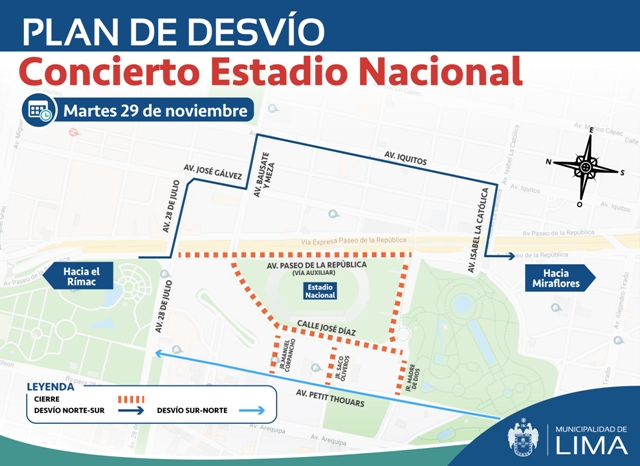 Lima, 28 de Noviembre del 2022.- La Municipalidad de Lima informa sobre el plan de desvío que se llevará a cabo este martes 29 de Noviembre debido al concierto del cantante británico Harry Edward Styles, en el Estadio Nacional.