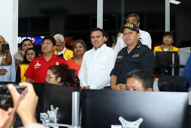 Durante su visita a la central de videocámaras, el alcalde y las autoridades invitadas presenciaron la recreación de un robo en una calle cercana. Tras el hecho delictivo se activó el protocolo para que posteriormente el personal de serenazgo reduzca al ladrón en tiempo record, demostrando la eficacia de este sistema de seguridad. Todo esto fue registrado en tiempo real con bodycams (cámaras adheridas al cuerpo de los serenos).