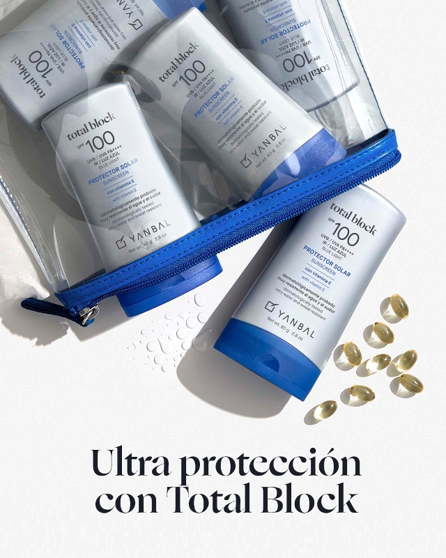 El Factor de Protección Solar o FPS es otro punto importante a tener en cuenta al escoger un bloqueador. Generalmente recomiendo un mínimo de SPF 50 en meses de verano. Teniendo un SPF 50 o 100, recuerden siempre reaplicar el bloqueador cada 2 a 3 horas en meses de verano y cada 3-4 horas en meses de invierno; un ejemplo de bloqueador que contiene amplia cobertura, pues protege de los cuatro rayos solares (la luz azul es del espectro solar pero es luz visible), es el Total Block de Yanbal, experto en cuidado de la piel, que tiene un FPS de 100, y gracias a su UV MAX Technology protege en gran porcentaje contra los rayos dañinos del sol (UVA, UVB), rayos IR y luz azul.