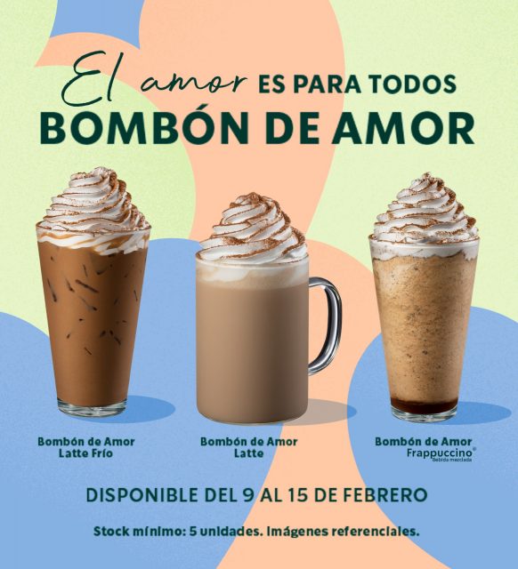 La nueva bebida Bombón de Amor y sus versiones hechas para ti, son la opción ideal para esto y tenemos la certeza de que la deliciosa mezcla de chocolate blanco, mocha, espresso y avellanas harán de tu cita algo dulce e inolvidable. Las bebidas Bombón de Amor estarán disponibles en del 9 al 15 de febrero.