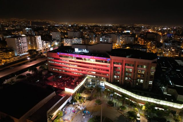 El evento se llevó a cabo en el Instituto Nacional de Enfermedades Neoplásicas y contó con la participación del Dr. Francisco Berrospi Espinoza, Jefe Institucional del INEN; el Dr. Javier Manrique Hinojosa, Director Ejecutivo del Departamento de Promoción de la Salud, Prevención y Control Nacional del Cáncer del INEN; y la Sra. Susana Wong, vocera de Semáforo Oncológico y directora de Lazo Rosado Perú, quienes dieron inicio a la actividad con palabras previas al alumbrado.