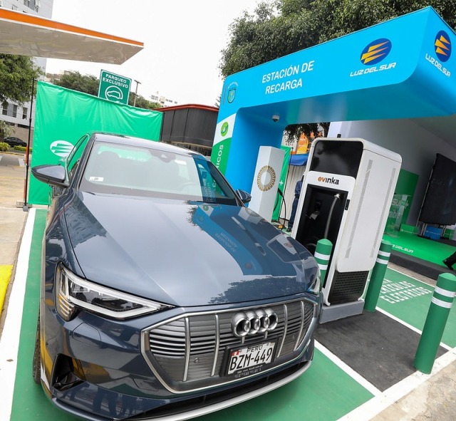 Lima, 3 de Marzo del 2023.- El Ministro de la Producción, Raúl Pérez Reyes Espejo, participó junto con la empresa Luz del Sur y la Municipalidad de Miraflores de la inauguración de la primera estación de recarga para vehículos eléctricos en vía pública, que permite recargar dos vehículos en simultáneo.