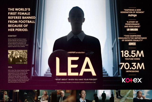 Producido por la marca Kotex, el cortometraje “La Historia de Lea Campos”, que cuenta la trayectoria de una de las primeras árbitras de fútbol del mundo, y refuerza el hecho de que las mujeres pueden y deben hacer lo que desean, ganó el León de Oro en la categoría “Entertainment for Sport”. Por otro lado, en la categoría “Public Relations”, Kimberly-Clark recibió el León de Bronce por la acción “Normalicemos lo Normal”, con la cual Kotex propone derribar los mitos y prejuicios que rodean a la menstruación.