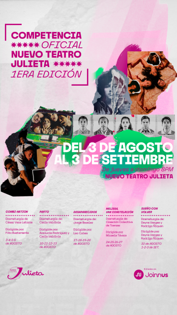 El Nuevo Teatro Julieta tiene el agrado de presentar la Competencia Oficial Nuevo Teatro Julieta Primera Edición, que nace de la necesidad de generar un encuentro en el que nuevos grupos, productoras, productores, directoras y directores puedan poner en escena innovadoras propuestas en un teatro profesional.