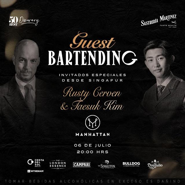 Rusty Cerven y Taesuk Kim, expertos en coctelería del bar Manhattan, compartirán sus conocimientos durante la noche de “Guest Bartending”. Este evento organizado por Sastrería Martínez se llevará a cabo el próximo jueves 6 de julio, a partir de las 08:00 p.m.
