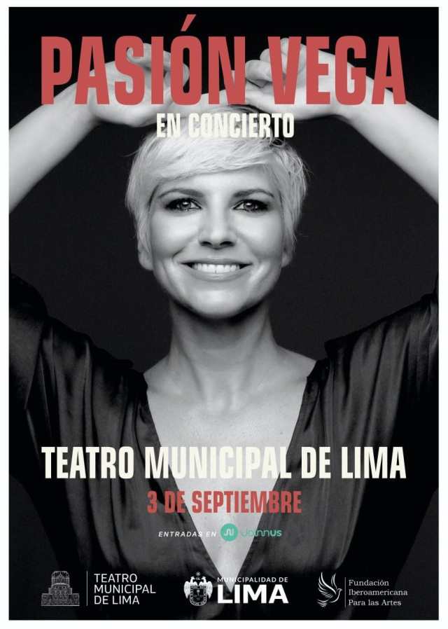 Lima, 31 de Julio del 2023.- La Fundación Iberoamericana para las Artes anunció la esperada visita de la reconocida cantante española, Pasión Vega, quien ofrecerá, por primera vez en Lima, su show «Pasión Vega en Concierto». El evento tendrá lugar el próximo 3 de septiembre de 2023 a las 07:30 PM en el prestigioso Teatro Municipal de Lima.