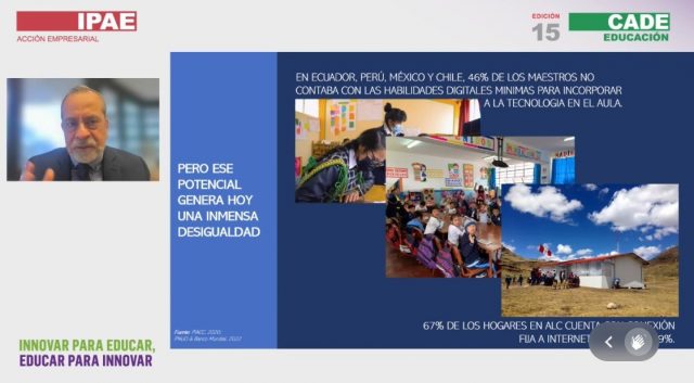 Saavedra resaltó también que hoy en el mundo, la región y los países “coexisten el siglo XX y el siglo XXI, pues en algunas escuelas existe todo el ecosistema que permite utilizar tecnología del siglo XXI, mientras que en otras no hay siquiera conectividad ni agua”.