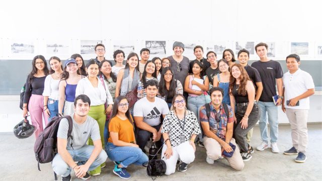 Perú, setiembre del 2023.- Los reconocidos arquitectos peruanos Sandra Barclay y Jean Pierre Crousse, creadores del diseño del Edificio E de la Universidad de Piura, visitaron Campus Piura y, junto a una delegación de prestigiosos arquitectos latinoamericanos, realizaron un recorrido por el galardonado Edificio E. Mantuvieron un encuentro informal con los profesores y futuros arquitectos del programa académico de Arquitectura de la UDEP, sobre temas de la carrera y experiencias profesional.