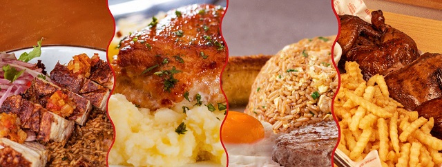 En caso del “Lomo Saltado”; consta 150 gramos de lomo fino, una porción de arroz blanco con choclito y papas fritas. El “Sándwich de Bondiola Ahumada”; contiene ¼ de pan baguette, 150 gramos de bondiola ahumada, queso mozzarella, pimiento, cebolla y mayonesa especial de ajo; “Mostrito Ahumado”, es ¼ de pollo ahumado, una porción de arroz chaufa, papas fritas y acompañado con una ensalada de col.