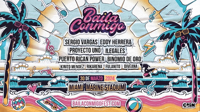 “La fiesta más esperada por los latinos quedará en su memoria para siempre”, así describen voceros de CMN lo que se vivirá en el Baila Conmigo Fest, con un cartel de lujo que reunirá en un mismo escenario, durante seis horas de show a Eddy Herrera, Sergio Vargas, Ilegales, Proyecto Uno, Binomio de Oro, Kinito Méndez, Rikarena, Fulanito, Diveana y Puerto Rican Power.