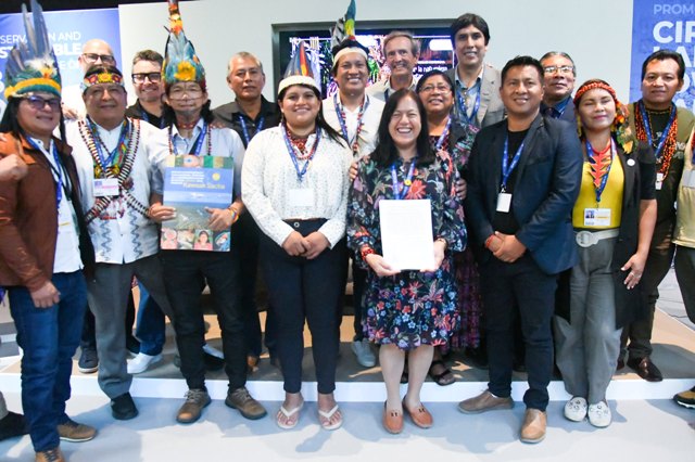 La declaración fue suscrita por organizaciones indígenas de la región como parte del evento paralelo denominado “Áreas protegidas y pueblos indígenas”, organizado por el Servicio Nacional de Áreas Naturales Protegidas por el Estado (Sernanp), organismo adscrito al Ministerio del Ambiente, y la Asociación Nacional de Ejecutores de Contratos de Administración de las Reservas Comunales del Perú (Anecap), en el Pabellón Perú.