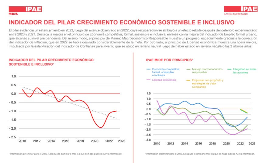 El indicador agregado IPAE Mide, que se calcula teniendo en cuenta los avances y retrocesos respecto a los cuatro pilares examinados, evidencia una ligera recuperación en el país, luego de una drástica caída en el 2020 debido a la pandemia del COVID-19. Sin embargo, a nivel general, los indicadores aún se ubican por debajo de los niveles alcanzados antes de la emergencia sanitaria.
