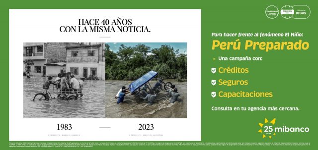 Mibanco se preocupa por el bienestar y el éxito de los emprendedores. La preparación es la mejor herramienta frente a la incertidumbre. ¡Actúa ahora y prepárate! Para más información sobre cómo proteger a tu negocio ante la inminente llegada del fenómeno El Niño, ingresa a mibanco.com.pe