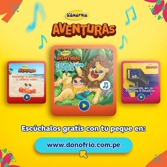 Esta iniciativa educativa forma parte del lanzamiento de D´Onofrio Aventuras, nueva marca de Helados D´Onofrio que ofrece un portafolio diseñado para que los padres y madres disfruten junto con sus hijos. Es así como esta marca busca inspirarlos a desconectarse durante este verano y sumergirse en un mundo lleno de historias cautivadoras. Para acceder a los audiolibros gratuitos, puede escanear el QR ubicado en la parte trasera de cualquier presentación de helado D’Onofrio Aventuras: CREA-turas, Zoorpresa o Copa K-Bana; e ingresar al sitio web www.donofrio.com.pe/aventuras