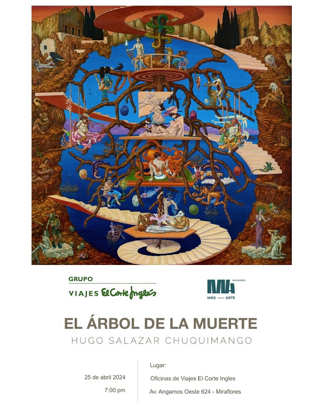Lima, 23 de abril del 2024.-La exposición “El árbol de la muerte” consta de una sola obra pintada al óleo y doce trabajos de pequeño formato en técnica mixta. La obra principal da título a la exposición y representa en cierta medida un develamiento simbólico sobre la idea de humanidad. La muestra busca documentar, mediante fragmentos ilustrativos, partes importantes para la construcción de esta única obra pictórica.