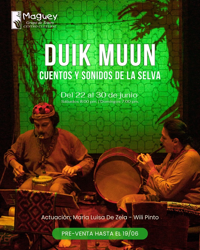 Lima, 27 de Mayo del 2024.- Continuando el Ciclo de Teatro e Interculturalidad, en el mes de junio Maguey Teatro presenta Dúik Muun, cuentos y sonidos de la Selva (el saber de los ancestros, en idioma Awajún).