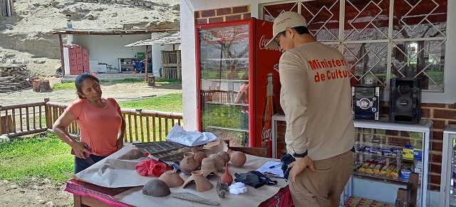 Los catorce (14) bienes culturales que se encontraban en el interior de una vitrina, y en mal estado de conservación, fueron entregados voluntariamente por la propietaria del establecimiento a los especialistas del Ministerio de Cultura, siendo trasladados de inmediato a la sede central de la referida institución en Lima, para llevar a cabo las posteriores acciones de protección correspondientes.