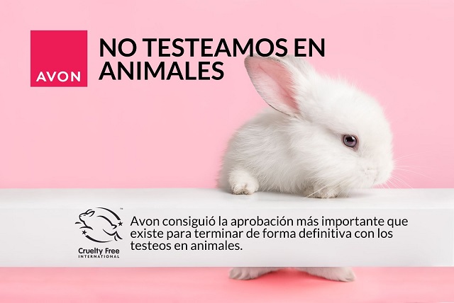 Avon no testea productos o ingredientes en animales en ningún lugar del mundo y ha estado trabajando para la aceptación de métodos de testeo alternativos sin animales durante tres décadas, para más información ingresar a https://www.avonworldwide.com/about-us/our-values/policies-positions/animal-welfare