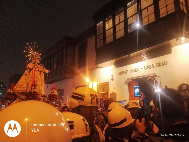 Este año La Virgen de La Merced tuvo días antes y hoy 24 de Setiembre diferentes estaciones de alegría a cargo de la Policía Nacional del Perú,el Ejército del Perú,la FAP,y la gloriosa Marina de Guerra del Perú con entrega de flores y de cada uno y el himno cantado por cada militar al compás de la banda y al son de la marcha hasta llegar nuevamente a la Iglesia acompañada de fieles y de los comandos de cada Fuerza Armada hasta iniciar la Misa en su honor.