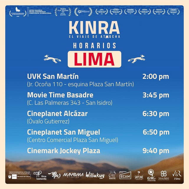 Kinra el viaje de Atoqcha, la ópera prima del cineasta cusqueño Marco Panatonic, ya se puede ver en cines de Lima, Cusco y Arequipa. La película que obtuvo el trofeo Astor Piazzola en el Festival de Mar del Plata y se llevó seis premios en el último Festival de Cine de Lima, se estrenó respaldada por excelentes comentarios de la crítica local e internacional. El film fue realizado por un equipo quechuahablante, íntegramente regional y con equidad de género.