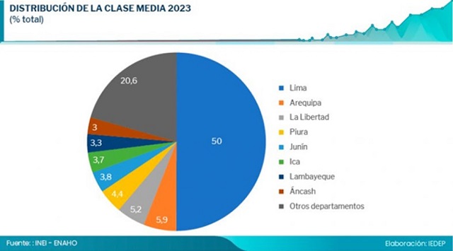 Lima,23 de Noviembre del 2024.-Según estudios la clase media peruana no recupera niveles del 2019 en 19 de 24 regiones. Actualmente el bajo crecimiento económico, la alta corrupción y las elevadas tasas de desempleo limitan la recuperación de la clase media. Revertir esta situación requerirá de un mayor dinamismo del mercado laboral; por lo cual es clave reactivar la inversión privada y fomentar el emprendimiento. Dos Millones de personas aun no regresan a la clase media luego de los diferentes impactos económicos adversos incluyendo la Pandemia COVID19 (Clase media cayó de 46% a 34% en el 2020 por efecto de la pandemia. Según cifras de la Encuesta Nacional de Hogares (Enaho) del INEI, se obtiene que aproximadamente la clase media se redujo en 3.6 millones de peruanos en el 2020 por el impacto del COVID-19 .