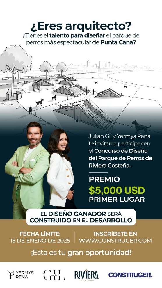 Lima, 16 de Diciembre del 2024.- En el marco del innovador proyecto inmobiliario Riviera Costeña, el reconocido actor, conductor y empresario Julián Gil y la destacada arquitecta Yermys Peña invitan a arquitectos y talentos creativos a participar en un emocionante concurso de diseño: la creación del parque para perros (Dog Park) que formará parte de este exclusivo desarrollo en Punta Cana, República Dominicana.