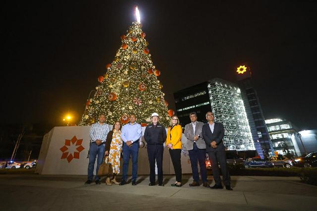 Como acto inaugural, el alcalde de Surco, Carlos Bruce, junto a la rectora de la Universidad de Lima, Patricia Stuart, lideraron el encendido del árbol navideño y nacimiento en el emblemático Óvalo Monitor.