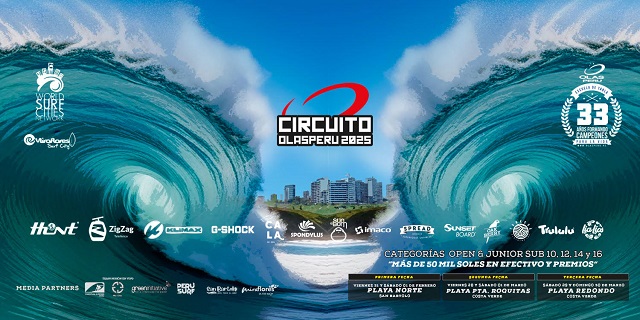 El Circuito Olasperú es posible gracias al apoyo de Hunt Oil, Zig-Zag Teleférico, Restarurante Cala, tablas Klimax, G-Shock, Sun Bum, wetsuits Spondylus, tablas Klimax, Imaco, Red Bull, Spread, Sunset, Slide, Oakberry, Tunkora, Trululu y Lia y Lios.