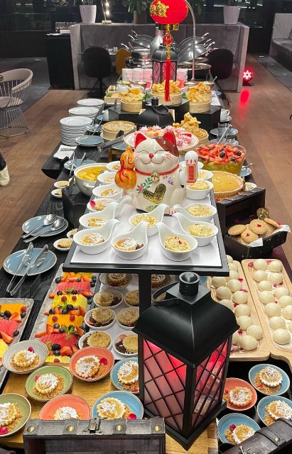 Los comensales podrán añadir una selección de salsas y acompañamientos, como salsa Hoisin, tamarindo frutado y sweet chili, que realzan los sabores tradicionales. Para cerrar ese banquete, contaremos con una sección de dulces típicos donde se ofrecerán opciones como pastel de luna, leche asada china, frutas frescas de estación, galletas de piña y almendra, y las clásicas galletas de la suerte.