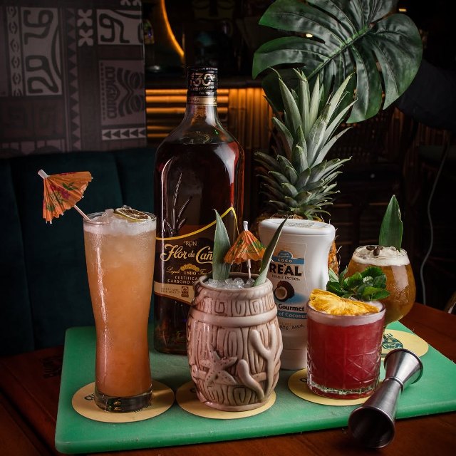 • ¡Sumérgete en una experiencia tropical con tus amigos en un bar tiki! Una experiencia innovadora en la que podrán disfrutar de efectos especiales inmersivos: las luces y el sonido del bar cambian creando una atmósfera mística. Pueden disfrutar de un Volcano Bowl, una bebida que simula la erupción de un volcán; Mr.Bubbles, un cóctel servido en una taza de pez gigante y Hula Nachos, acompañados de 3 salsas.