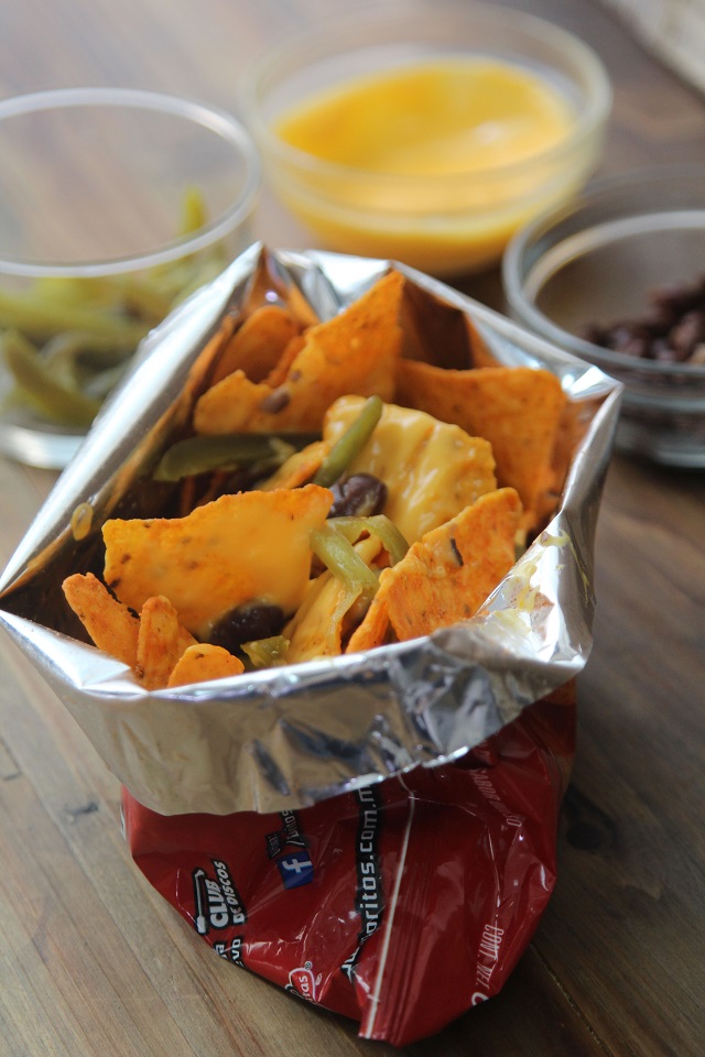 Sobre una base de Doritos®, coloca el chanchito caliente, agrega huancaína al gusto, espolvorea queso rallado y completa con granos de choclo. Decora con culantro. Ideal para compartir… o no.