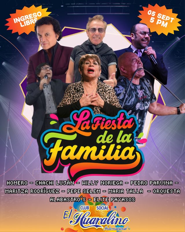 Lima.- El corazón de Los Olivos se prepara para vibrar con una noche inolvidable que promete hacer historia. Este viernes 5 de septiembre desde la 5:00 PM, el icónico local El Huaralino se transformará en el epicentro de la música, el sentimiento y la unión familiar con la gran «Fiesta de la Familia», un espectáculo gratuito y de altísimo nivel organizado con el respaldo de la Municipalidad de Los Olivos.