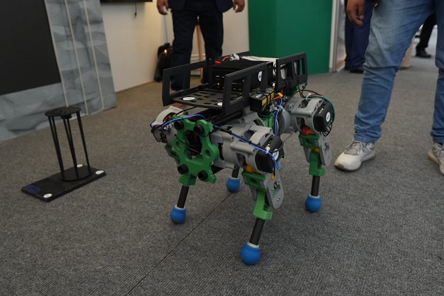 Arequipa, 27 de setiembre de 2025.- En PERUMIN 37, los alumnos de la Universidad Católica de Santa María (UCSM), presentaron a “Catito”, un robot cuadrúpedo diseñado para explorar zonas de riesgo como minas subterráneas. El dispositivo fue construido en alianza con Incimmet y E2i.