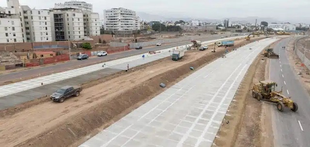 El primer tramo ya presenta la vía principal totalmente vaciada en concreto, tras trabajos de movimiento de tierra, conformación de subrasante y pavimentación. También se concluyó al 100% el asfaltado de las vías auxiliares, con un total de 35,560 m² intervenidos. Esto en el tramo comprendido entre la avenida República de Panamá y la Panamericana Sur.