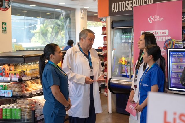 En cada establecimiento, el Dr. Darío González Burgos, cirujano oncólogo de mamas, y la Dra. Jimena Neira Gorriti, radióloga especialista en imágenes mamarias de Clínica San Felipe, junto con personal de enfermería y tecnología médica, brindaron orientación a las clientas en filas y salas de espera, resolviendo dudas sobre la enfermedad y recordando que la mamografía es el único método que ha demostrado disminuir la mortalidad del cáncer de mama, al permitir su detección temprana.
